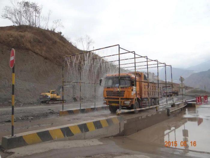 ▲?入渣場前噴淋渣土車